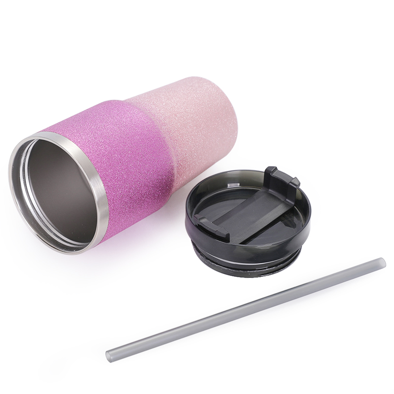 The cup features a summer-inspired design language, showcasing eye-catching glitter gradient coating, fresh macaron hues, and minimalist summer prints. When illuminated by light, these elements create a dynamic shimmer effect that not only aligns with young people's aesthetic preferences for fashionable accessories but also effortlessly blends into beach days, camping trips, or daily commutes. The cup itself becomes a statement piece when held in hand, instantly drawing attention wherever it goes.