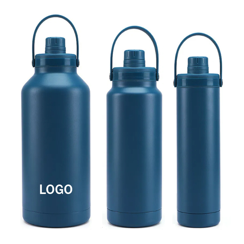 Introducing our series of blue stainless steel water bottles, available in three sizes. Each bottle features a convenient carry handle for easy transport. The bottle can be customized with your LOGO, making it perfect for brand promotion or personalization. Ideal for staying hydrated during outdoor activities, workouts, or daily commutes, these bottles combine functionality with a sleek design.
