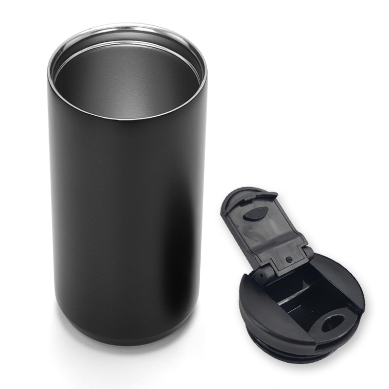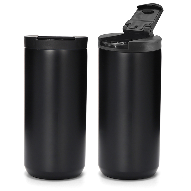 This 330ml double-layer vacuum insulated cup made of 304 stainless steel features a sleek black design with a straight-drink style and a flip-top lid. Perfect for coffee, tea, and other beverages, its double-layer vacuum insulation effectively maintains drink temperature. The compact size makes it ideal for daily use—whether commuting, working out, or driving.