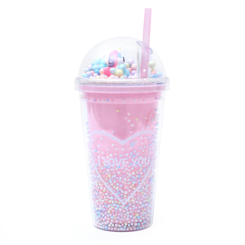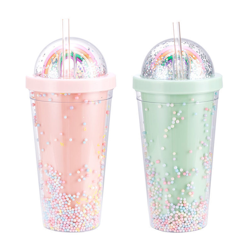 Rainbow Bubble Straw Cup Cold Drink Juice Plastic Tumbler