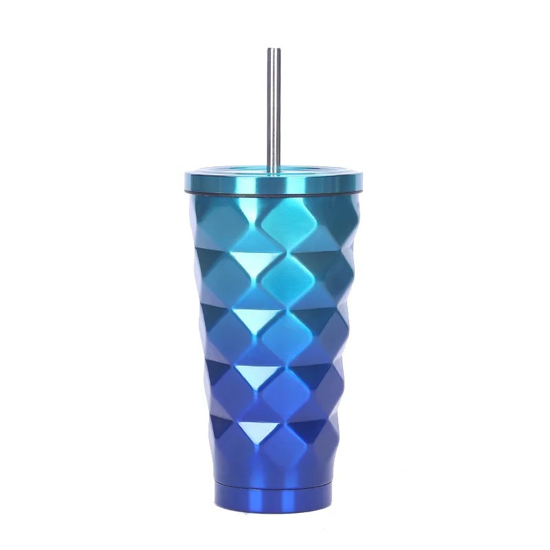 Design: The cup features a diamond-shaped 3D pattern that creates a pineapple-like texture, paired with gradient colors (such as orange-gold, blue-purple, multi-color, and pink-gold gradients), making it fashionable and eye-catching while combining artistic appeal with texture.