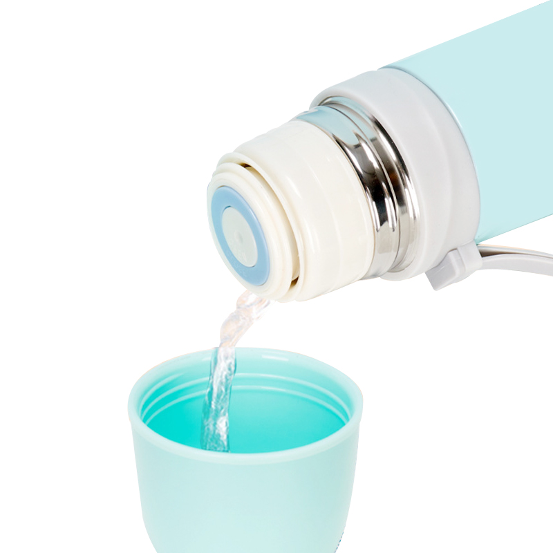 350ml Mini Size: A must-have for school: Only 20.8cm high, 6.8cm wide, it can easily slide into the side pocket of a primary school backpack. So light that it feels like carrying a picture book, and the child can carry it effortlessly; available in four colors: macaron purple, pink, blue, and green, like putting candy colors into the backpack.