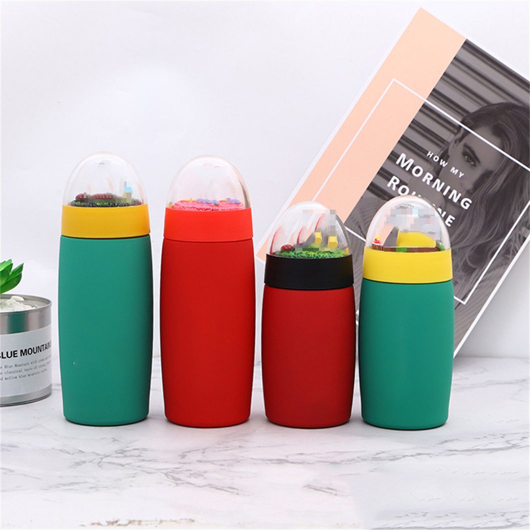 The appearance color is fresh and clean. The top of the cup lid is designed as a transparent hemispherical shape, with cartoon images inside, creating a micro landscape effect, which is both beautiful and interesting, suitable for consumers who like cute style.