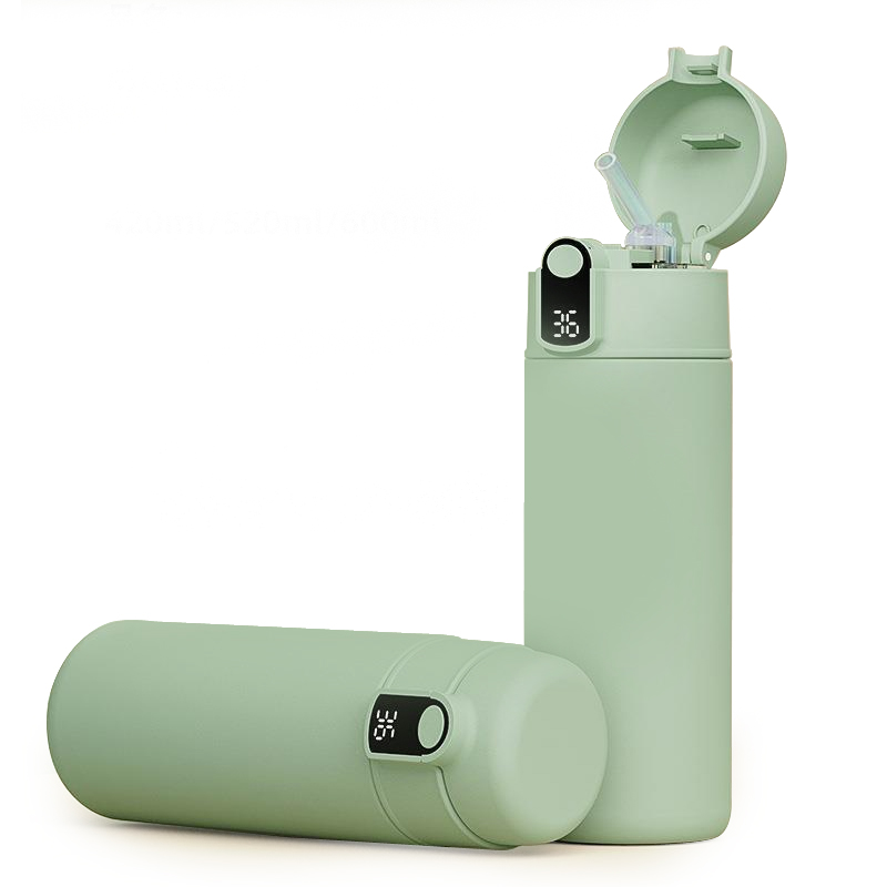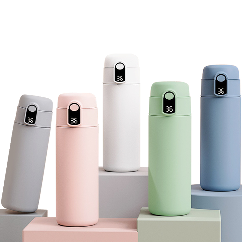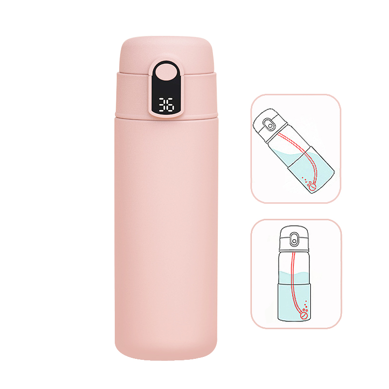 These sleek stainless steel smart thermoses feature a stylish design with refreshing color schemes in white, green, and pink. The one-touch snap-on lid ensures easy single-handed operation. As a portable outdoor drinking cup, it's perfect for daily commuting and outdoor activities, providing convenient hydration on the go. The durable stainless steel construction maintains optimal temperature retention, keeping your drinks warm or chilled for extended periods.